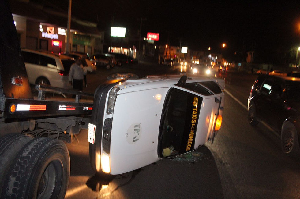 Los primeros reportes indican que el conductor del taxi, no se percató de que en su camino se encontraba una grúa por lo que colisionó y rampeó quedando de lado.