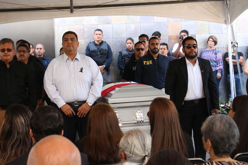 compañeros amigos y familiares de las víctimas les dieron el último adiósen un emotivo evento que encabezó el fiscal de la zona centro Carlos Mario Jiménez además de comandantes y jefes de las agencias estatales de investigación.