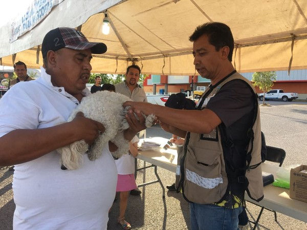 Chihuahua.- A fin de proteger la salud de las familias chihuahuenses, el Gobierno Municipal a través de la Dirección de Servicios Públicos (SPM), realizó la vacunación contra la rabia y baños contra garrapatas a 107 mascotas en la colonia Insurgentes, ello como parte de las acciones realizadas en el marco del programa “Presidenta en tu colonia”.